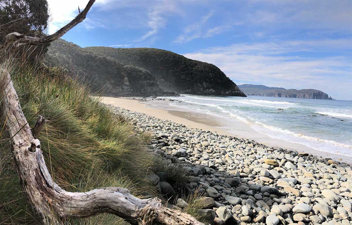 The East Cloudy Head Track begins with a 3 km walk along the windswept beach at Cloudy Bay in the South Bruny National Park. Nesting shorebirds lay their eggs amongst the beach debris during spring and summer, so please walk along the wet sand.