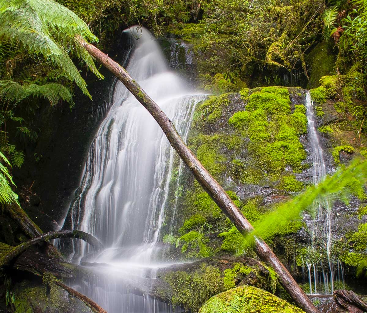 The Waterfall Creek State Reserve lies about 5 kilometres inland of the Fluted Cape section of the South Bruny National Park. The Reserve includes a series of waterfalls in a steep sided gully known as Mavista Falls. Located nearby to the national park, Waterfall Creek State Reserve provides additional support for attracting visitors to the region. Waterfall Creek State Reserve provides a scenic forest walk. Waterfall Creek State Reserve is predominantly wet eucalypt forest, dominated by Eucalyptus obliqua with myrtle Nothofagus cunninghamii, manfern Dicksonia antarctica and other fern species in the gully.