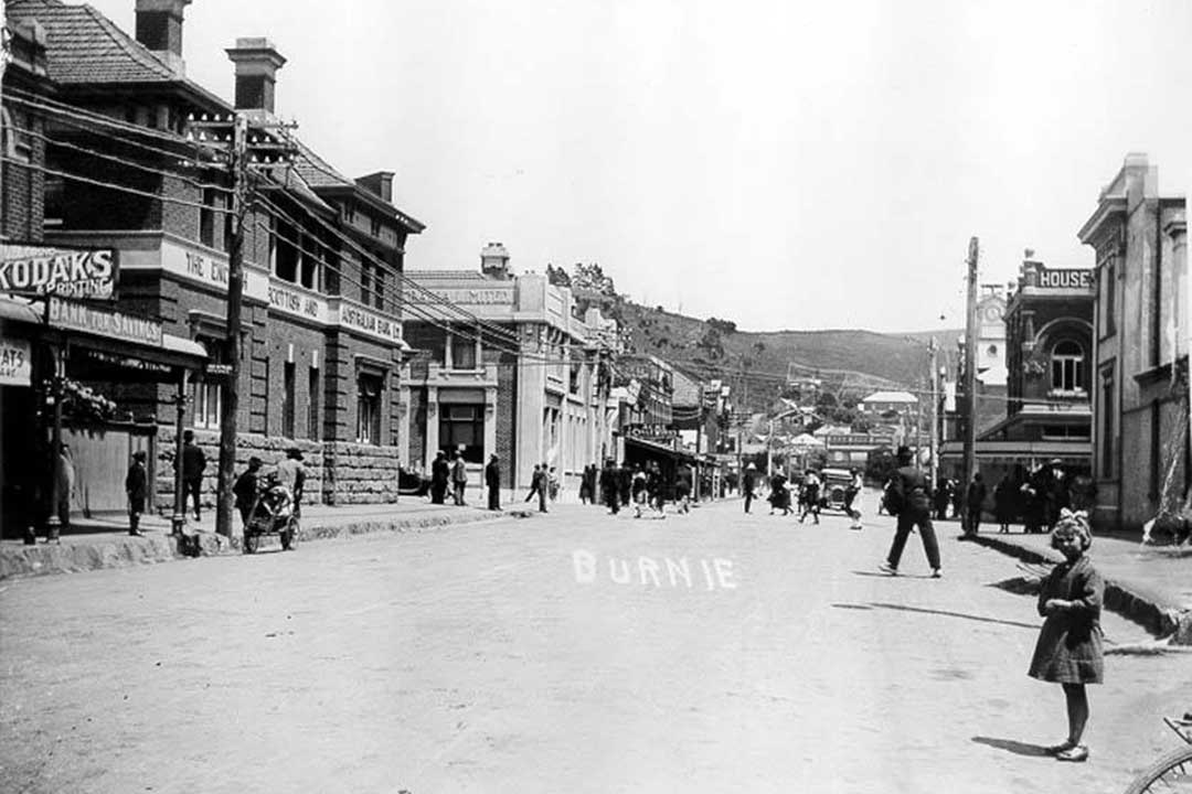 Cattley Street, Burnie. Above: New Years Day, 1921. Below: 2020