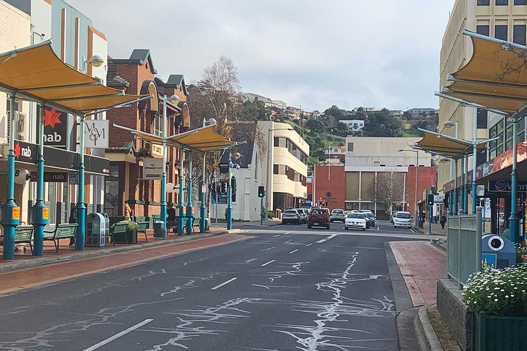 Wilson Street, from cnr Wilmot Street, Burnie. Below: 2020