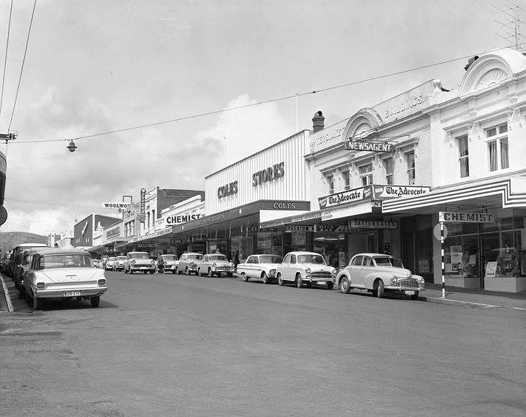 Wilson Street, from cnr Wilmot Street, Burnie. Above: 1900s. Below: 1960s