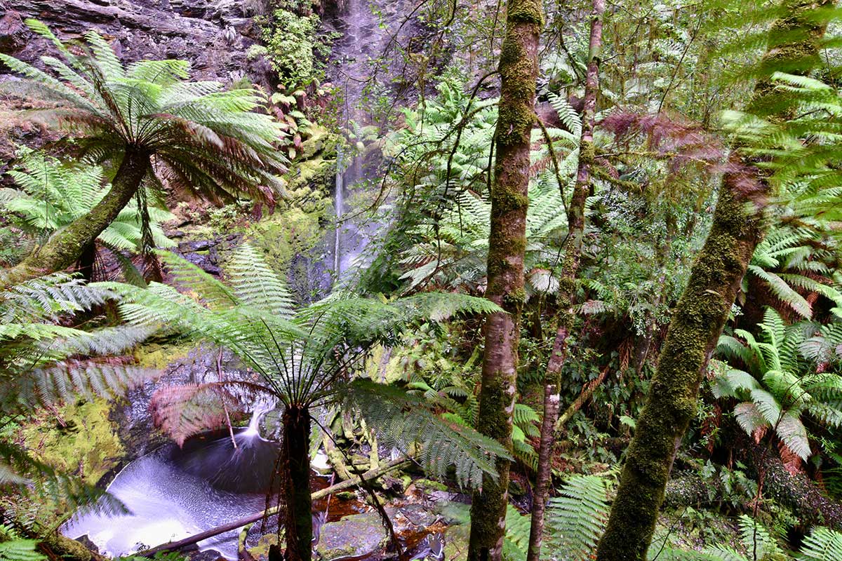 These 30m vertical drop falls are situated 200m along a timber boardwalk, that follows Amelia Creek from the Pieman River jetty; a wonderful place to appreciate huon pine, sassafras, myrtle and fern groves. Witness the spectacular glow worm displays at night. Due to the remoteness of the falls, access is only possible by canoe or kayak, which can be hired at Corinna. There are also approximately 40 unnamed, hidden waterfalls along the Pieman River, from the Reece Dam to the sea.