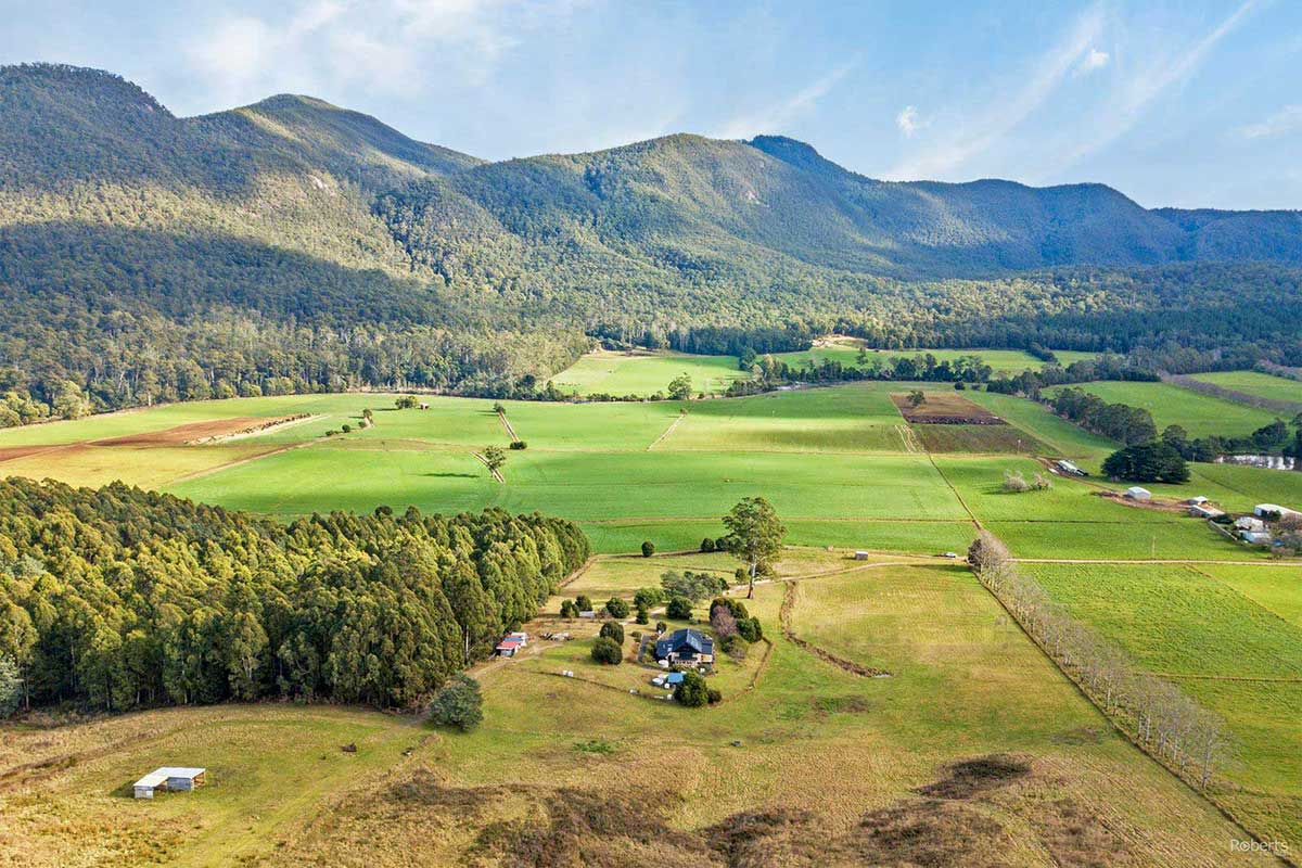 Gunns Plains is a rich fertile area dotted with dairy farms, potato growing, poppy growing and beef cattle. In days gone by vegetables were grown here and it was also one of the three major hop producing regions in Tasmania. The Leven River winds slowly through its pastures that support a variety of grazing stock. Agricultural endeavours are also very successful, benefiting from rich red volcanic soil. The town was named after botanist Ronald Campbell Gunn, who visited the valley in 1860.