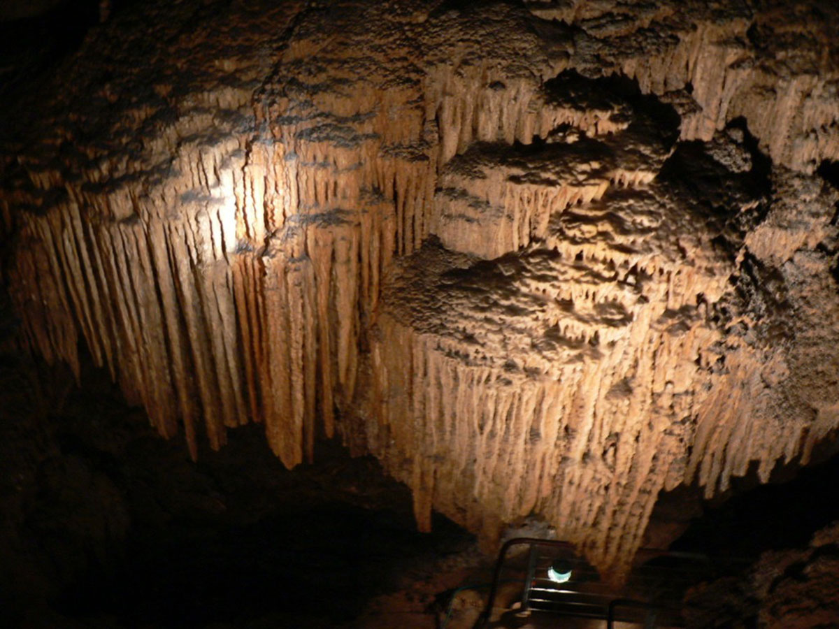 Interpretive guided tours of the cave are run daily at 10am, 11am, 12pm, 1.30pm, 2.30pm and 3.30pm. Upon entry a steep flight of 54 concrete steps are descended and from this point the pathway is fairly level apart from a short ladder to be climbed down. The tour route through the caves is 275 metres long. Because candlelight and torchlight were troublesome, power and fixture lighting was installed throughout to illuminate the walking track and the cave's unique features.