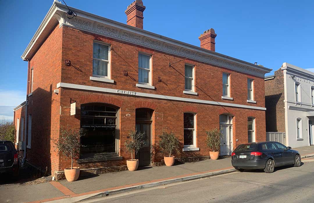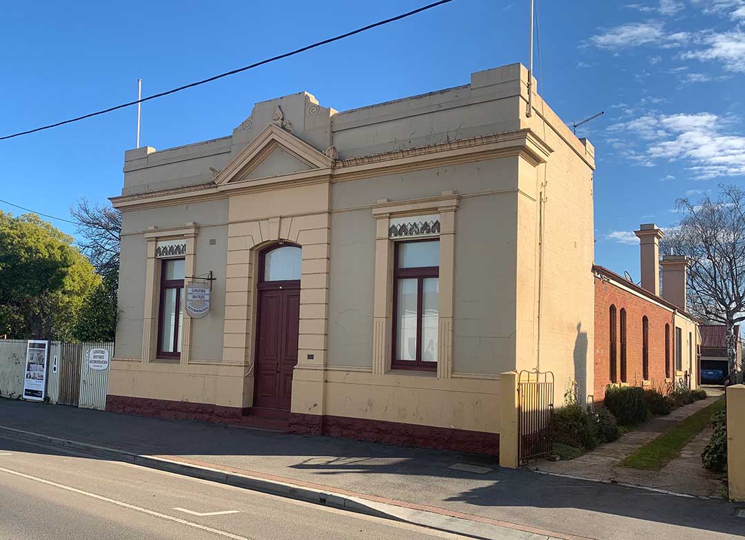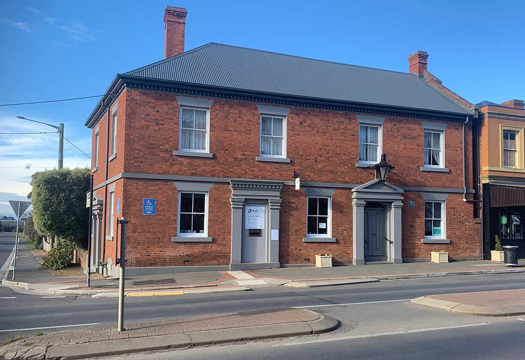 6 Marlborough Street: the brick on stone cement rendered former Commercial Bank of Tasmania building in Marlborough Street was built in the 1870s by Humphries and Roe who also built the Post Office opposite.