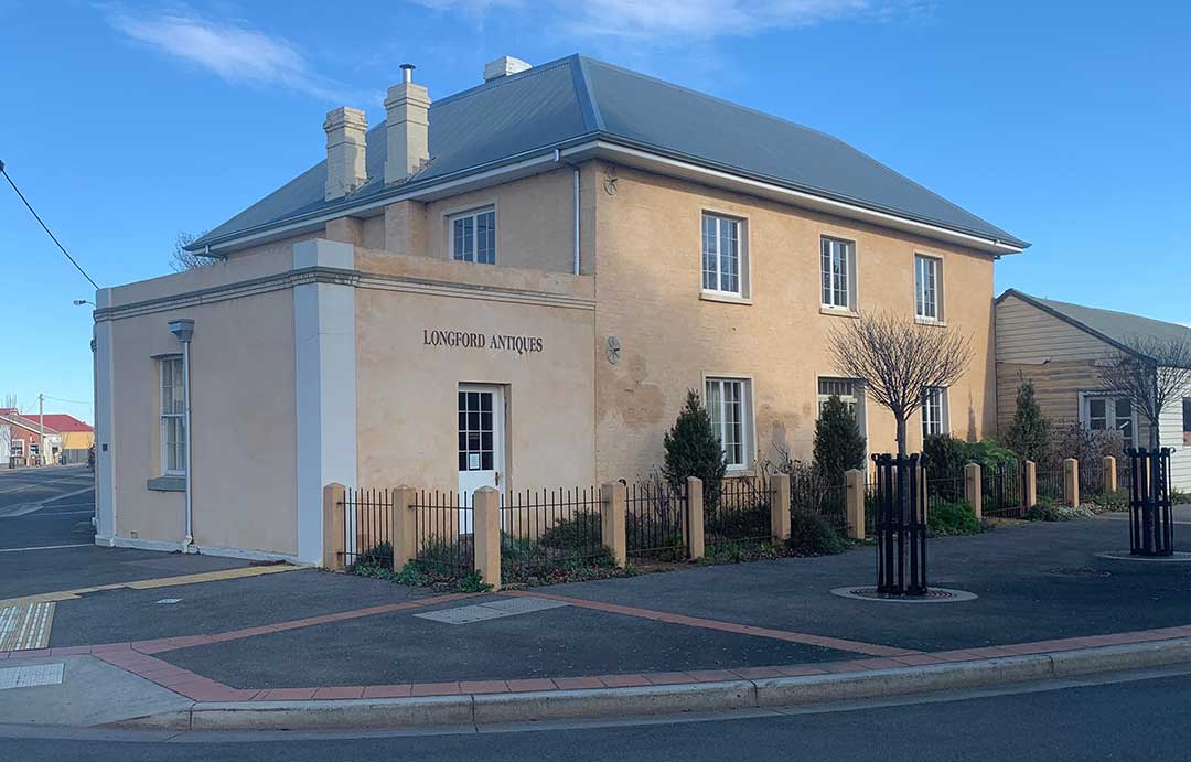 Longford Hotel, Cnr Wellington and William Streets: The town has many old inns, some of which have been long used as private dwellings. Such is the case with the former Longford Hotel, built in 1827 by Newman Willat, Launceston's first Postmaster. It was later the Penny Savings Bank, a library and livery stables, a doctor's residence and surgery, and the Temperance Hotel, set up by the Ball brothers who were Welsh miners of strict religious faith. It was known as Jensen Lodge in the mid 1990s. It has now been renovated back to its original form by local rtist Michael McWilliams.