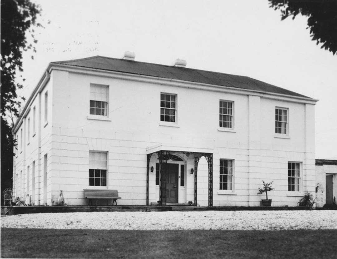 Mountford Homestead: situated on the Perth Road two km fron Longford, this well sited two storey Georgian stucco house was probably built in the 1830s by George Palmer Bell, with later alterations. The south face, once three bays, has a fourth bay added to the east end; iron work of a demolished verandah supports a porch to this facade. The north facade has a single storey iron verandah. A large yard is enclosed by a single-storey service wing, two storey coach house and stables and high connecting walls. Other outbuildings comprise shearing shed, another timber shed, cottage, and four level brick barn.