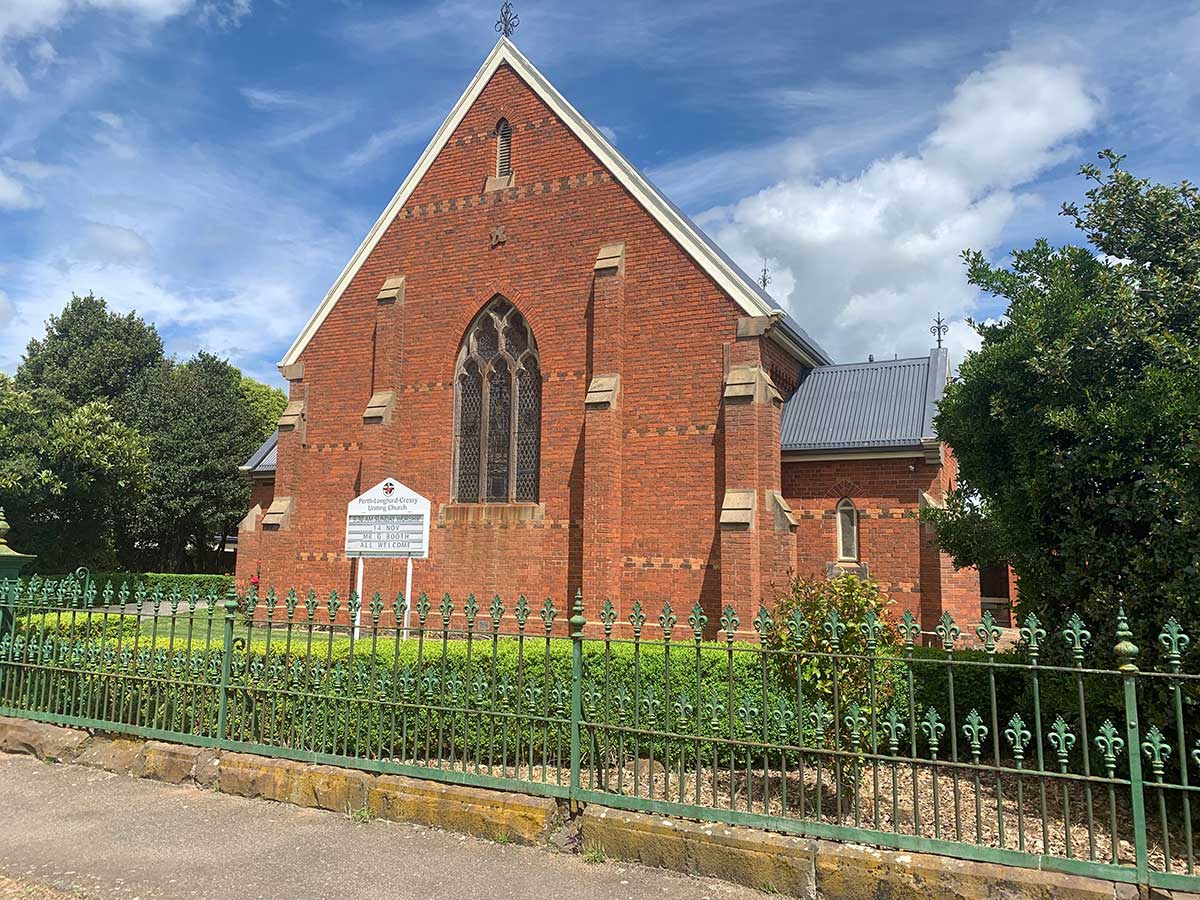 The Uniting Church, 2 High Street: formerly the Primitive Methodist Church, it was built by Thomas Humphrey. The foundation stone was laid by Mrs Edward Archer of 'Northbury' in 1879. The Longford Wesleyan movement began in 1834 under the guidance of Reverend John Manton of Launceston. The first meeting was held in ‘Lawrence’s barn’, on a farm adjoining ‘Northbury’. In 1837 a chapel opened in Wellington Street that was built on land donated by Joseph Heazlewood. The church was build on faulty foundations and this was to ultimately contribute to its demolition. After the old church on Wellington Street was demolished, a Sunday school building was constructed on the site of the original chapel in 1902. It was built in front of the original Sunday school established in 1846. Both the original Wesleyan Sunday school and the 1902 Methodist school still stand and have been converted into a private residence.