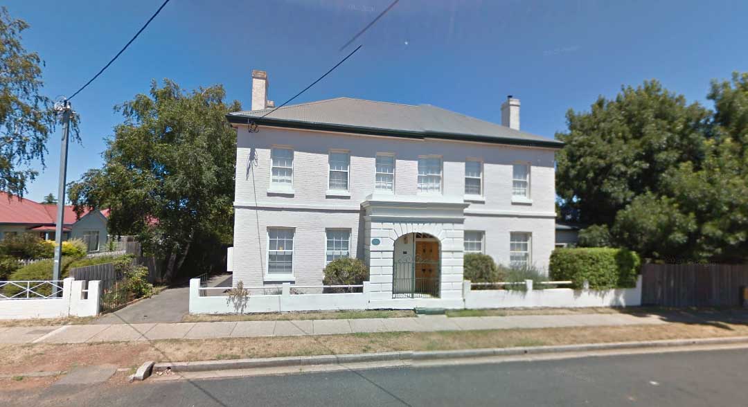 Beulah, 103 Wellington Street: Previously known as Iona, a magnificent example of Georgian architecture. It was built in 1835 for Dr Salmon. It became the rectory and was home for the Reverend Alfred Stackhouse and his family. Stackhouse became chaplain at Perth in 1843. In the same year he married Ellen, second daughter of Thomas Archer of Woolmers. The house has large dormer at the rear that was added later. The main facade features a projecting bay window flanked on either side by 15-pane windows. Later additions include a skillion and a porch.