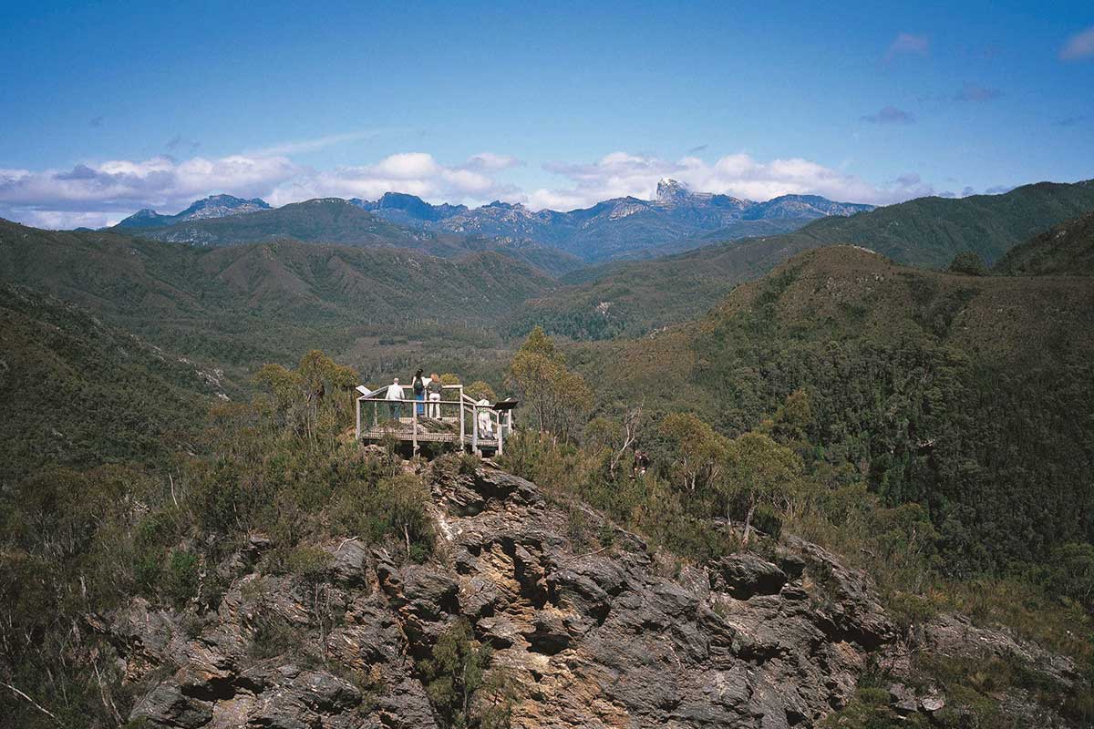 When approached from the south via Lyell Highway, excellent views of Queenstown and the surrounding area are afford around 5km out of Queenstown. There are some great walks of varying lengths that allow access to the surrounding countryside. The Donaghys Hill Walk has views to the Collingwood River, Franklin River Valley and Frenchmans Cap, which is one of the highest peaks in the area. The Bird River walk takes you deep into West Coast Wilderness rainforest, winding past streams and tree ferns. The walking track leads to the old port of Pillinger. The Franklin River walk begins 62km from Queenstown and provides access to the Franklin River via a level, well maintained path.