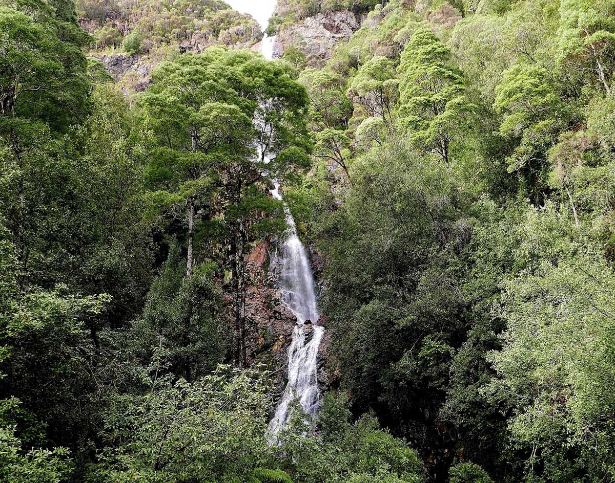 At 105 metres, Montezuma Falls is Tasmania's highest falls. To access the falls, follow the Montezuma Falls Trail traversing lush rainforest with leatherwood, myrtle and sassafras. This trail follows the former North East Dundas Tramway which ran from Zeehan to Williamsford, once a busy mining town but now slowly being reclaimed by the bush.