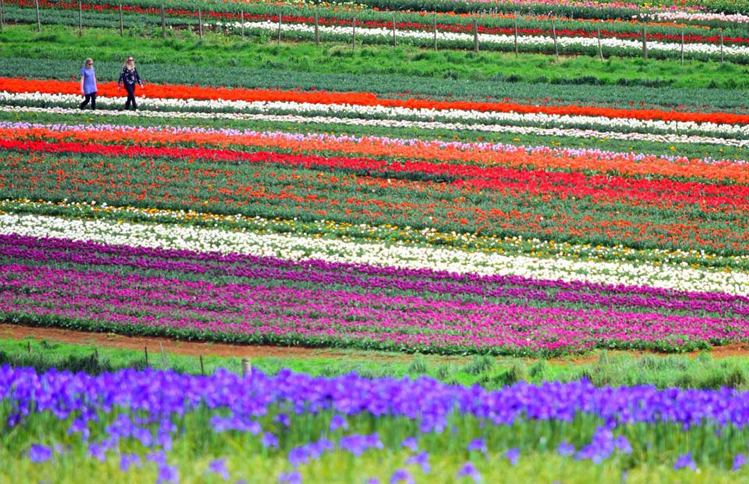 The flowers everyone comes to see here are the tulips grown on the farm of Van Diemen Quality Bulbs. It is in fact the largest tulip fields in the Southern Hemisphere that you can actually wander in, but though the farm operates all year round, it is only during late September through to mid October that it explodes with colour. Visitors are welcome to see this spectacle and delight at walking amongst the tulips. It is also a lure for photographers who have the opportunity to take fantastic shots utilising backdrops of Bass Strait, the lighthouse and the surrounding rich farmlands to showcase the vista of colourful blooming fields.