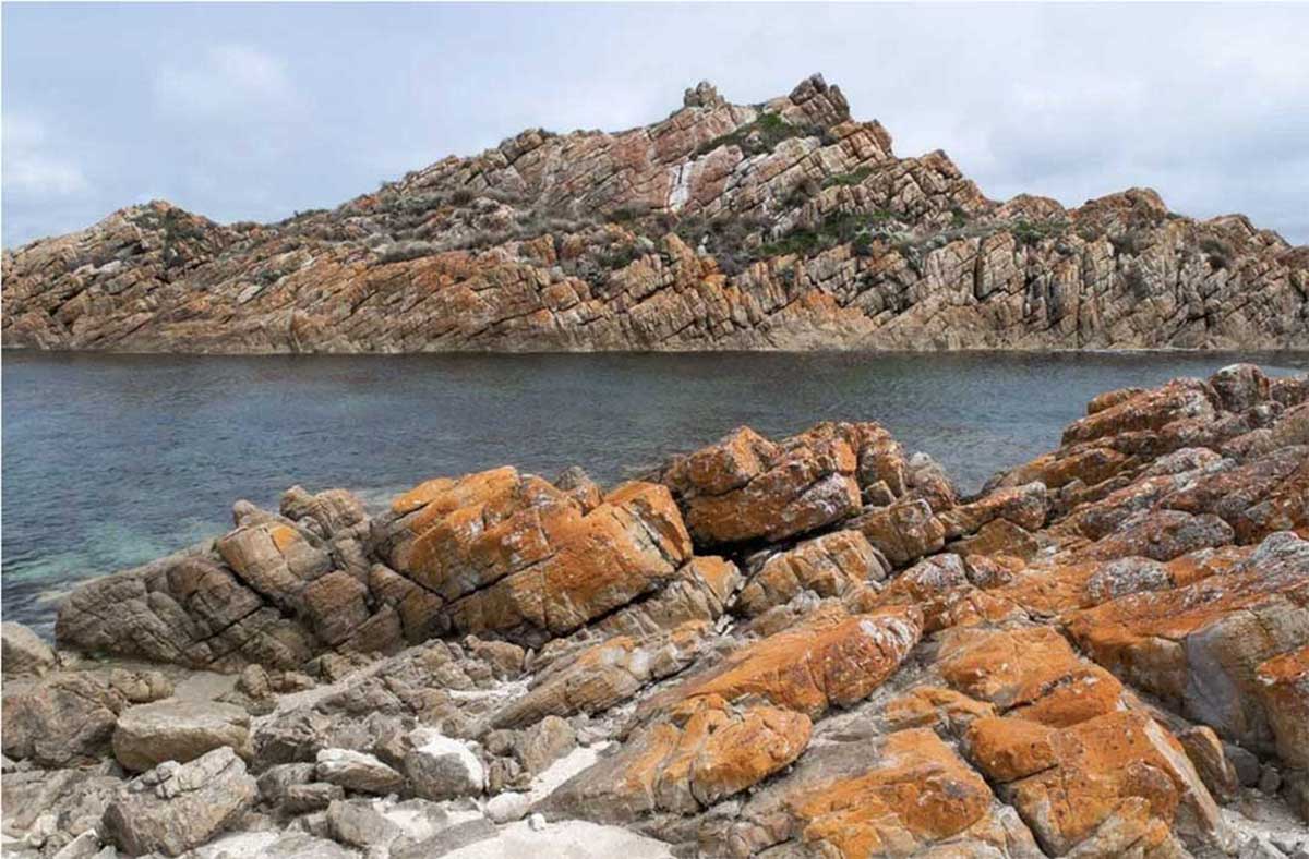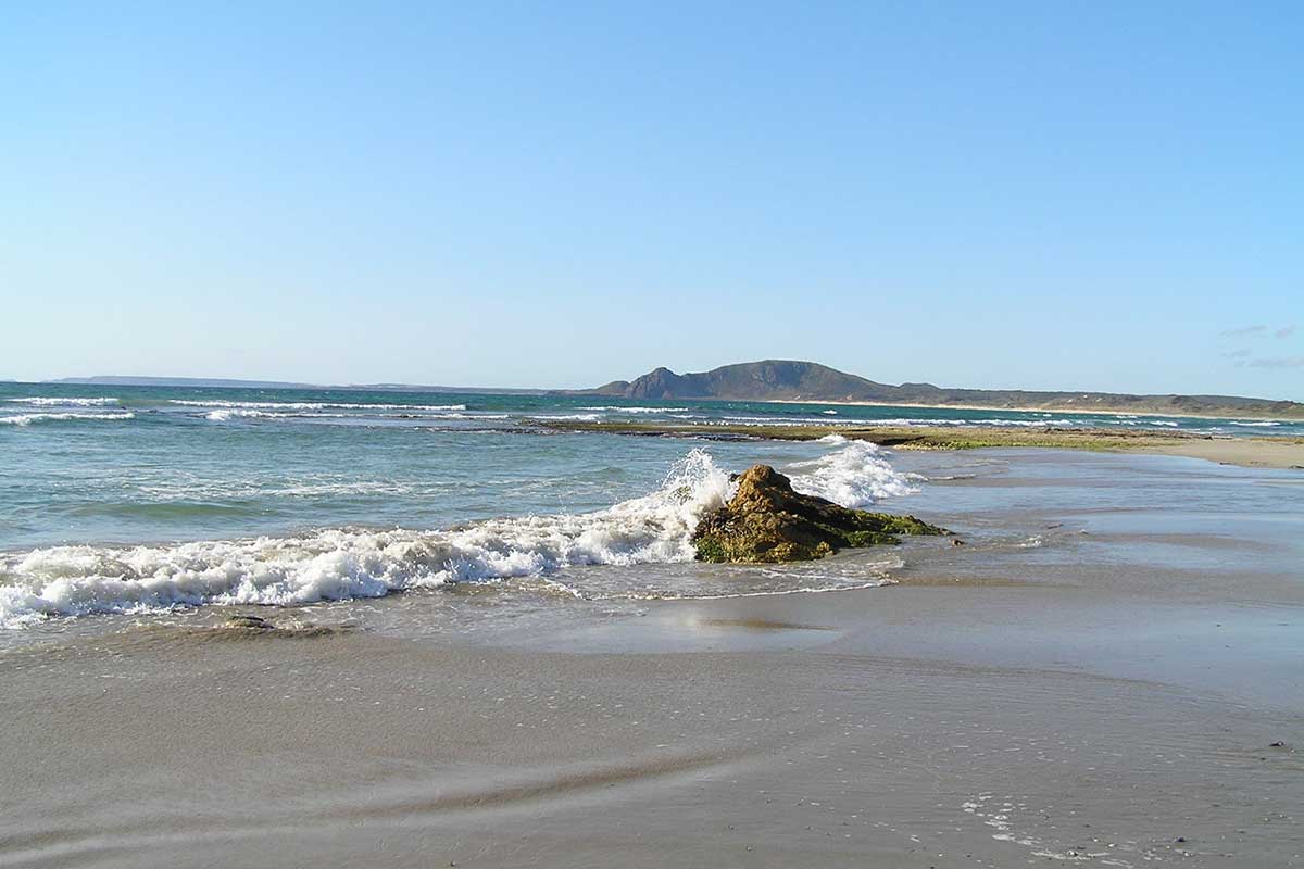Conical Harbour is a small sheltered rocky embayment located midway along the 8 km of rocky shoreline and reefs between Four Mile Beach and Hardwicke Bay, to the north of Granville Harbour. The bay is named after rounded conical granite outcrops that extend inland from the shoreline, with the most prominent rocks adjacent to the small beach. A vehicle track reaches the bay where there are three fishing shacks located amongst the rocks. The beach is used to launch small boats, with boats occasionally moored in the gutter off the beach.