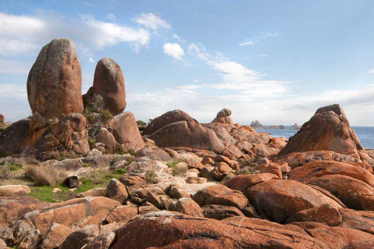 The Tarkine has a spectacularly wild coastline, battered by the winds of the roaring 40s. The purest air in the world. Huge dunes that stretch inland up to several kilometres. Rocky, jagged coastal stretches. Incredible Granite Tor formations (especially at Conical Rocks south of the Pieman River), extensive long sandy beaches, lagoons, grassy woodland, coastal heathland, marshes and swampland. Sandy cape forms a dominant and spectacular feature of the Tarkine's coast.