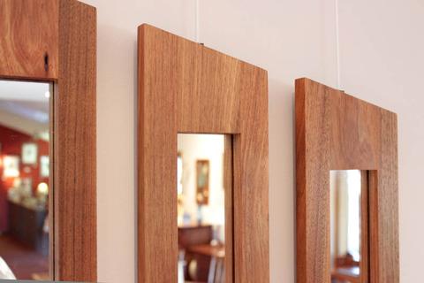 These versatile, elegant, Lipstick Mirrors, (so called because they resemble the shape of a lipstick) are available singly, by twos or by threes and are available in either Blackwood or Jarrah. These mirrors are contemporary, smart, and provide endless possibilities for your personal creativity. Note: These wooden lipstick mirrors are handcrafted, and as every piece of wood is unique no wood mirrors are exactly the same; the above dimensions and weight are approximate measurements only.