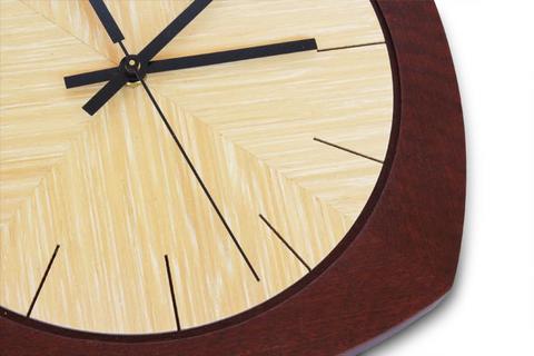 Contemporary lines define the look of this Jarrah and Ash wall clock. The matt-black hands for seconds, minutes and hours sit clearly on the Silver Ash clock face with the contrasting Jarrah frame in a rounded-off square shape adding an interesting design feature. The hours are represented by fine lines cut into the clock face, the whole look being clean and contemporary yet losing none of the natural warmth that wood brings to a room.