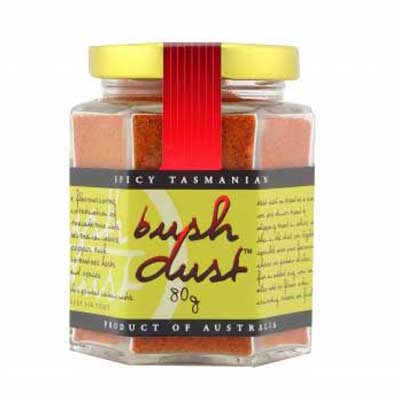 Bush Dust Spice is a mixture of Native Pepper, Macadamia nuts, Bush tomatoes, herbs and spices. Originally designed to have on crusty bread with olive oil, but you can use it however one desires. It complements fish especially salmon and chicken extremely well and is great on game, potato dishes, pasta, and pizza. Bush Dust is Gluten Free.