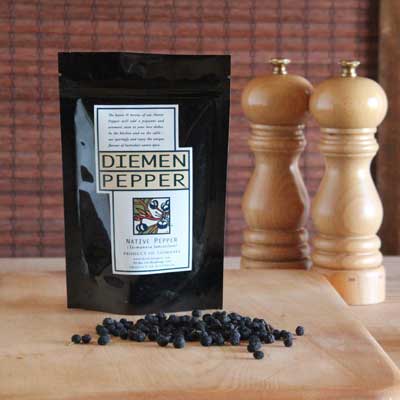 Diemen Pepper is a small, locally owned enterprise specialising in the products of the Tasmanian rainforest plant: Native Pepper. We harvest, dry and prepare pepperberries and leaf for sale interstate and for export. Our pepper product is unique - although our peppers look a bit like conventional pepper, they give a sweet fruity flavour followed by a brief, sharp tingly sensation on the palate, and are very popular in several discerning markets - Germany and France for example. Our dried pepperleaf is used by many commercial manufacturing businesses to provide that unique native flavour of the Australian Bush.