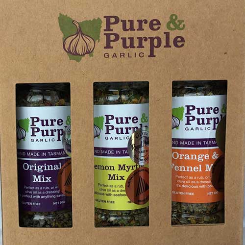Pure & Purple Garlic is the amalgamation of a passion and appetite for all things garlic. We love garlic – growing it, cooking with it, and sharing results with our family and friends. We pride ourselves on making products using our distinctive Tasmanian purple garlic, combined with high quality ingredients to produce unique and versatile products that add a wonderful flavour to your food. We invite you to discover our wonderful range of dried garlic products.