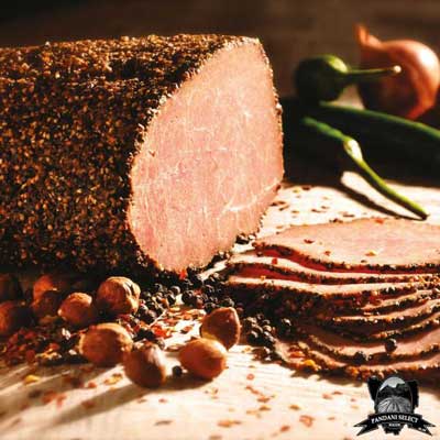 Pandani Beef PastramiPandani Select Foods is a family owned business and has been producing the finest quality smallgoods including ham products since 1965. Pandani Select Foods specialises in cooked meats. Beef Pastrami is literally bursting with flavour. Made from premium eye round of beef, then coated in a unique selection of peppers and spice which are blended on-site for every batch - you can expect freshness and a mouthful of flavour every time.