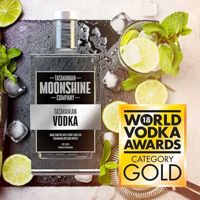 Tasmanian VodkaTasmanian Vodka is a grain vodka distilled from Tasmanian Malted Barley carefully fermented and gently craft distilled in Tasmania by Tasmanian Moonshine Company. Tasmanian Vodka is triple distilled, once in our 1800 Litre copper pot still, and twice more in our 380L column still resulting in the purest and smoothest vodka available. Being craft distilled, and hand bottled at our distillery based in the heart of Hobart, each small batch holds its own distinctive characteristics and signature.