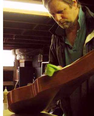 Alaskan born Daniel Brauchli (brow klee) is a musician and artist who has been playing, designing and building musical instruments for over thirty years. Now living in Tasmania, Daniel is making original designs of guitars, mandolins, accoustic slide guitars etc, that combine the powerful acoustic properties of carbon fiber bracing, with beautiful Tasmanian timbers.