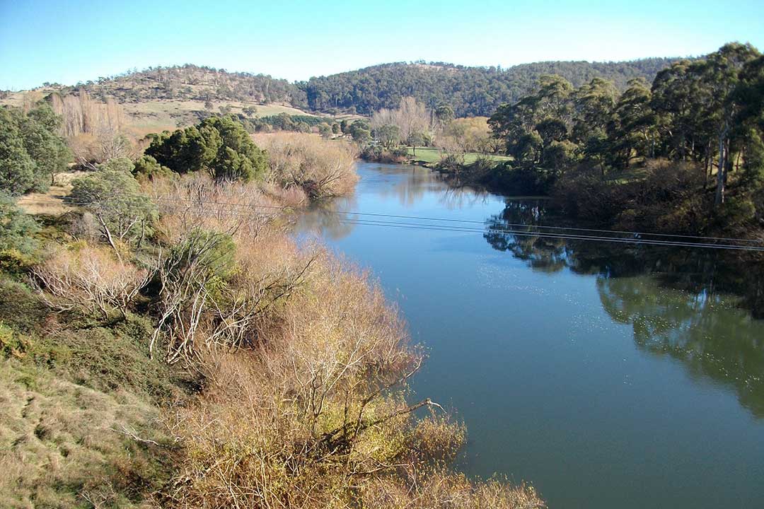 Flooding of the South Esk River and the need for a river crossing have constrained transport in the town for much of its history. The South Esk, now crossed by a bridge on the Meander Valley Highway, separates the town from settlements further west and unusually high floods can cut the highway on the town's east, when it is submerged at Beams Hollow. The river was first crossed by a ford known as "Reibey's Ford" near Entally House. Due to the variability in its flow this ford was frequently impassable requiring traffic to make significant detours. Thomas Haydock Reibey installed a punt at the crossing in 1828. By a specially passed Government act he was allowed to charge a toll for its use.