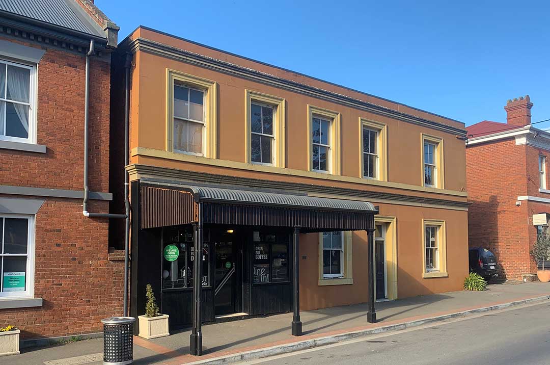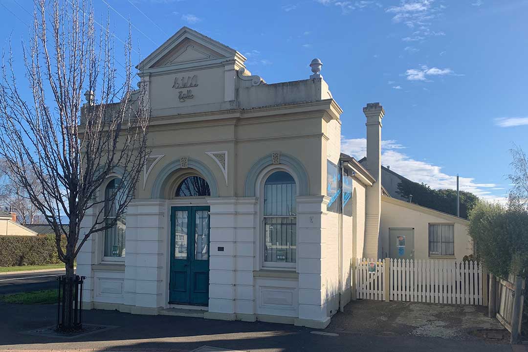 6 Marlborough Street: the brick on stone cement rendered former Commercial Bank of Tasmania building in Marlborough Street was built in the 1870s by Humphries and Roe who also built the Post Office opposite.