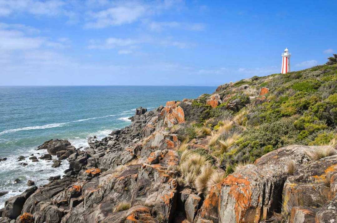 The Mersey Bluff Lighthouse standing at the mouth of the Mersey River near Devonport is unusual in Australia with its distinctive vertical red striped day mark. Established in 1889 and is built of bricks on a stone base, it replaced a succession of beacons and obelisks that had formerly stood on the site. It also replaced the earlier Don River light. The establishment of the lighthouse ended a history of wrecks in this area.