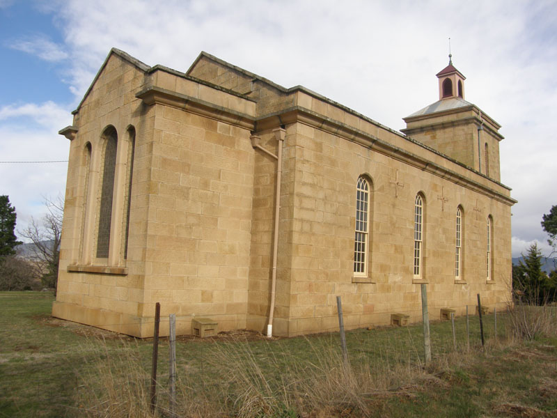 Off the Midlands Highway not long ater leaving Launceston, Longford is the region centre for the York Plains that has been classified as an historic town. The Plains have been recognised as a prosperous farming district noted for its wool, dairy produce and stock breeding since early colonial times. The Longford district has many buildings included on the Tasmanian Heritage Register, with many in Longford itself. Christ Church, a sandstone building which dates from 1839, boasts a clock and bell that were gifts from King George IV; its stained glass window is impressive, and the church's graveyard includes many prominent Tasmanian families.