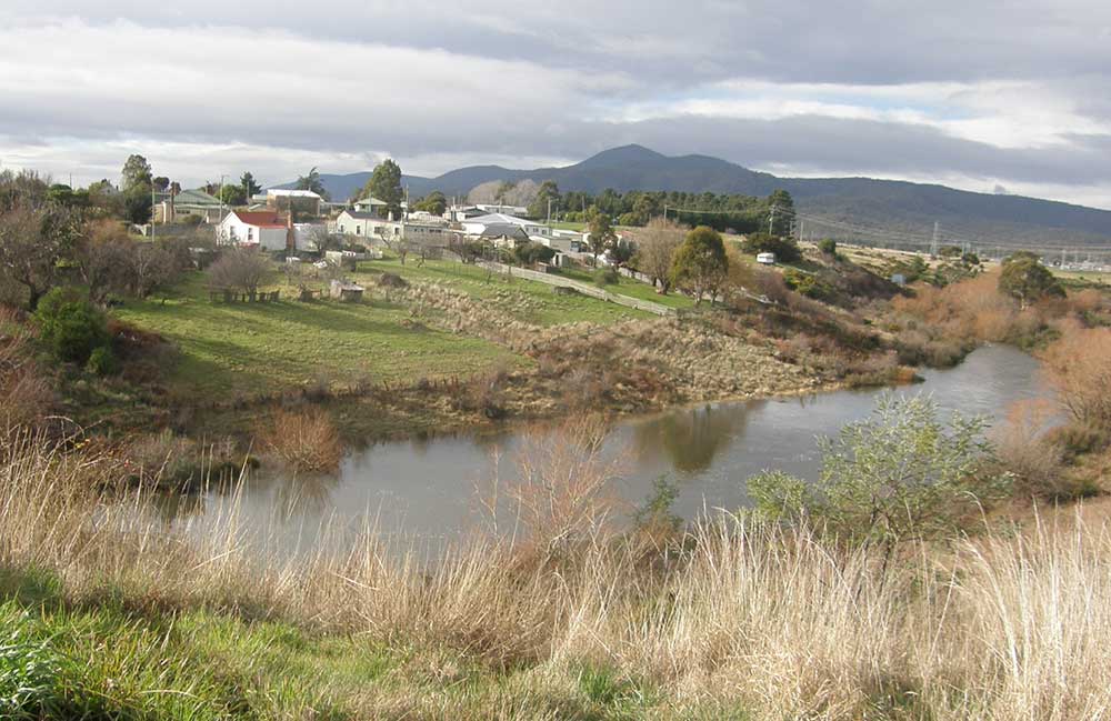 The South Esk springs from the eastern foothills of the Ben Lomond plateau near Mathinna and the river's course describes an arc around the entire southern promontory of the mountain – running through Fingal, Avoca and Evandale before winding its way northwest through Perth, Longford and Hadspen. The river merges with the tributary Meander River, then flows through the narrows of the Cataract Gorge to finally meet the North Esk River at Launceston. From this confluence arises kanamaluka/Tamar River, which runs to the Bass Strait.