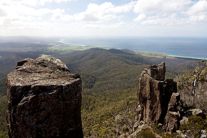 The challenging climb to the top of the cone shaped St Patricks Head is rewarded by stunning forest and coastal views. It is a not an easy walk (there are places where metal cables and ladders are used to help the climber) but the view is spectacular and well worth the effort. A more accessible vantage point is South Sister Peak. The coast, the valley and the Mathinna Plains are just a few landmarks that can be seen from South Sister.