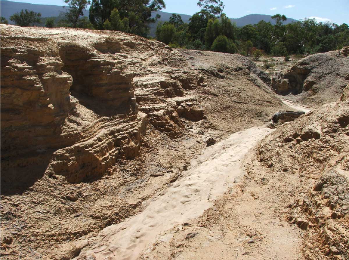 To the west of Evercreech Forest Reserve is the village of Mathinna was once the scene of an important gold strike. The Mathinna goldfield started, like many others, with the discovery of alluvial gold in Black Horse Gully. The area contains one of Tasmania's largest gold mines, the New Golden Gate, which had a total (historical) production of over 260,000 ounces (8 tonnes) of gold. The area is riddled with abandoned mines, prospects and old workings, and is mostly crown land, meaning fairly easy access. Unlike other areas in Tasmania, the bush is fairly open and easy to walk through, though the grades of the hills are steep.