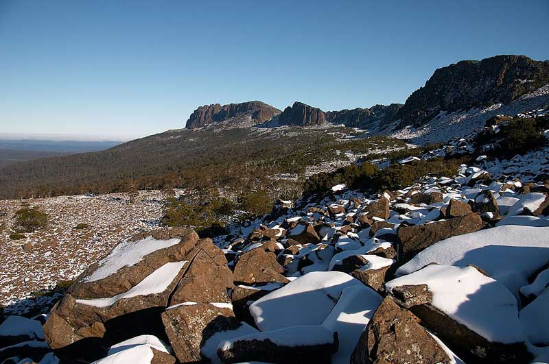 From St Marys, there are three ways by which to return to Launceston. Backtracking along the Esk Highway is the shortest, at 128 km. The second is to travel down St Marys Pass to the coast, then north to St Helens (36 km) and on to Launceston via Scottsdale (161 km for St Marys). The third option to is take Elephant Pass Road from St Marys, drive down Elephant Pass and turn right upon reaching Tasman Highway at Chain of Lagoons. Follow the highway south through Bicheno, taking Lake Leake Highway to the right before reaching Swansea. Follow Lake Leake Highway to Campbell Town, turn right into Midland Highway and return to Launceston. (203 km from St Marys). Stacks Bluff Stacks Bluff: at 1,527 metres, this peak on the Ben Lomond Plateau at the southernmost end of the escarpment is the sixth highest point in Tasmania. A major feature of the Ben Lomond National Park, it is a popular venue with bushwalkers and mountain climbers. The track to the summit begins at Story's Creek.