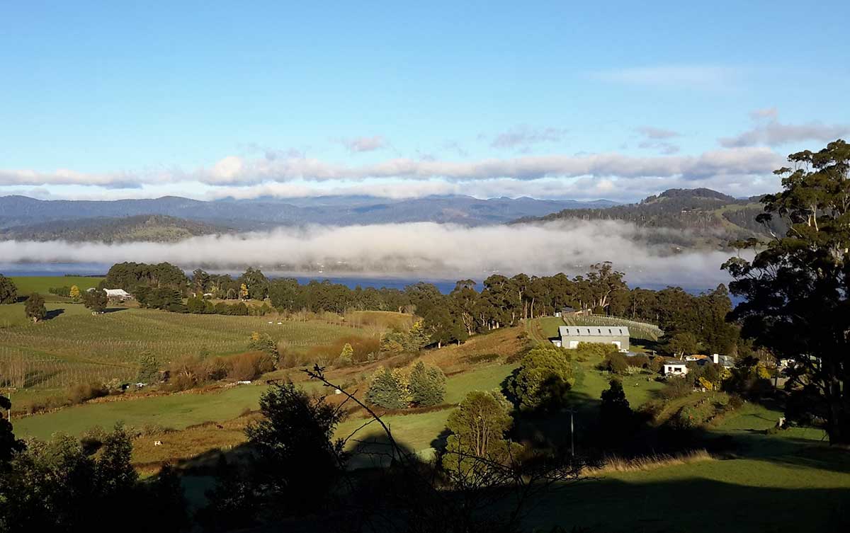 Gardners Bay, to the south east of Cygnet, is both a rural area and a small inlet on Kanagaroo Bay on the Huon River. If you are looking to take one of those iconic photos of the amazingly tranquil, reflective waters of the Huon, Gardners Bay is a great place to start your search. Be there on a still day and chances are you'll get what you are looking for here, or at nearby Glaziers Bay. Close by are two award-winning wineries - Panorama Vineyard at Cradoc, and Hartzview Vineyard (photo), high in the mountains above Gardners Bay. As its name suggests, Hartzview affords panoramic views across the Huon Valley to the Hartz Mountains.