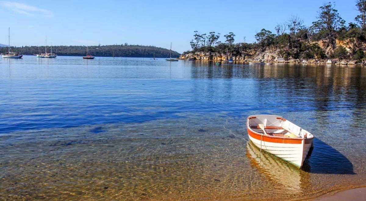 Recherche Bay is in every way the end of the road - a quiet, idyllic bay in the far south of Tasmania beyond the Huon Valley. There are three small settlements on Recherche Bay - Catamaran, Recherche Bay and Cockle Creek. These are the most southern communities in Australia. A signpost at Cockle Creek marks the most southerly point in Australia accessible by motor vehicle. The southern tip of Tasmania, Australia's southern extremity, which marks the beginning of the South West Walk, is just an hour's walk away. The bay was the first landing place of French explorer Bruny D'Entrecasteaux who came ashore here for water and stayed for a number of weeks in 1792 to rest his crew and complete maintenance on his ships.