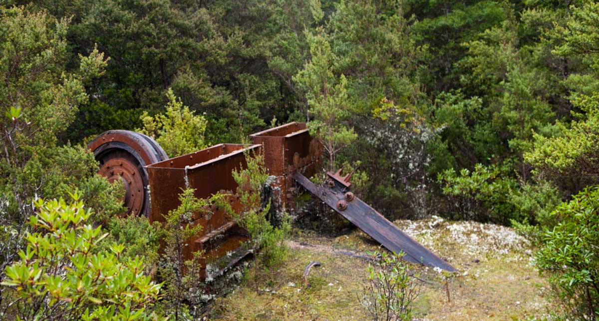The ore crushing stampers of the Anchor Tin Mine are the remains of one of the largest tin mines in the North-East of Tasmania. Once running with a maximum of 100 stampers, the mi was first opened in the early 1880?s and was the largest open cut mine in the world in 1890. As well as the 100 stamper battery the mine had a water wheel 20 metres in diameter which is no longer in evidence today. The stampers can be found north west of St Helen on the way to Pyengana.