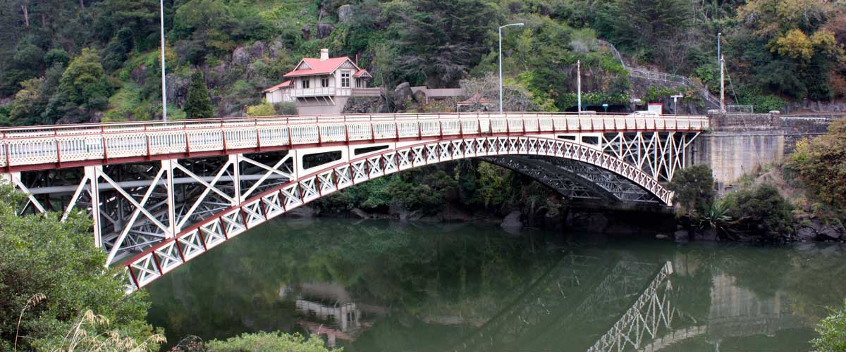 The South Esk River cuts a deep canyon through the hills near its juncti with the native flora. The South Esk is crossed here by a suspension bridge which leads to a picnic area, an Olympic swimming pool on with the Tamar, known as Cataract Gorge. Its rapids are particularly spectacular after heavy rains have fallen in the central highlands. A pathway on the north side of the gorge leads to Cataract Cliff Grounds Park, where European shrubs and trees have been establishedand a children's wading pool. A chair lift also crosses the gorge.