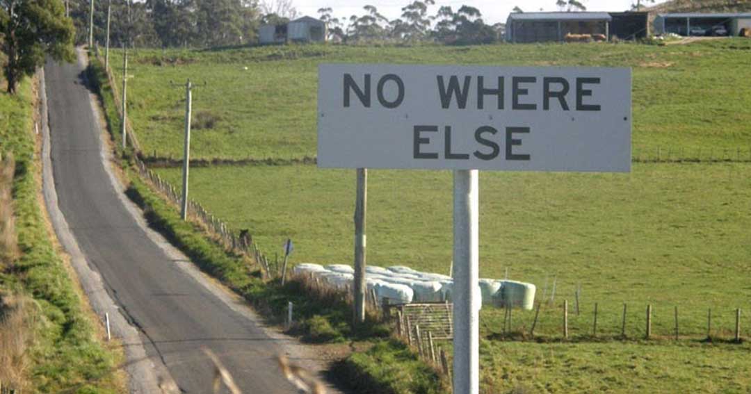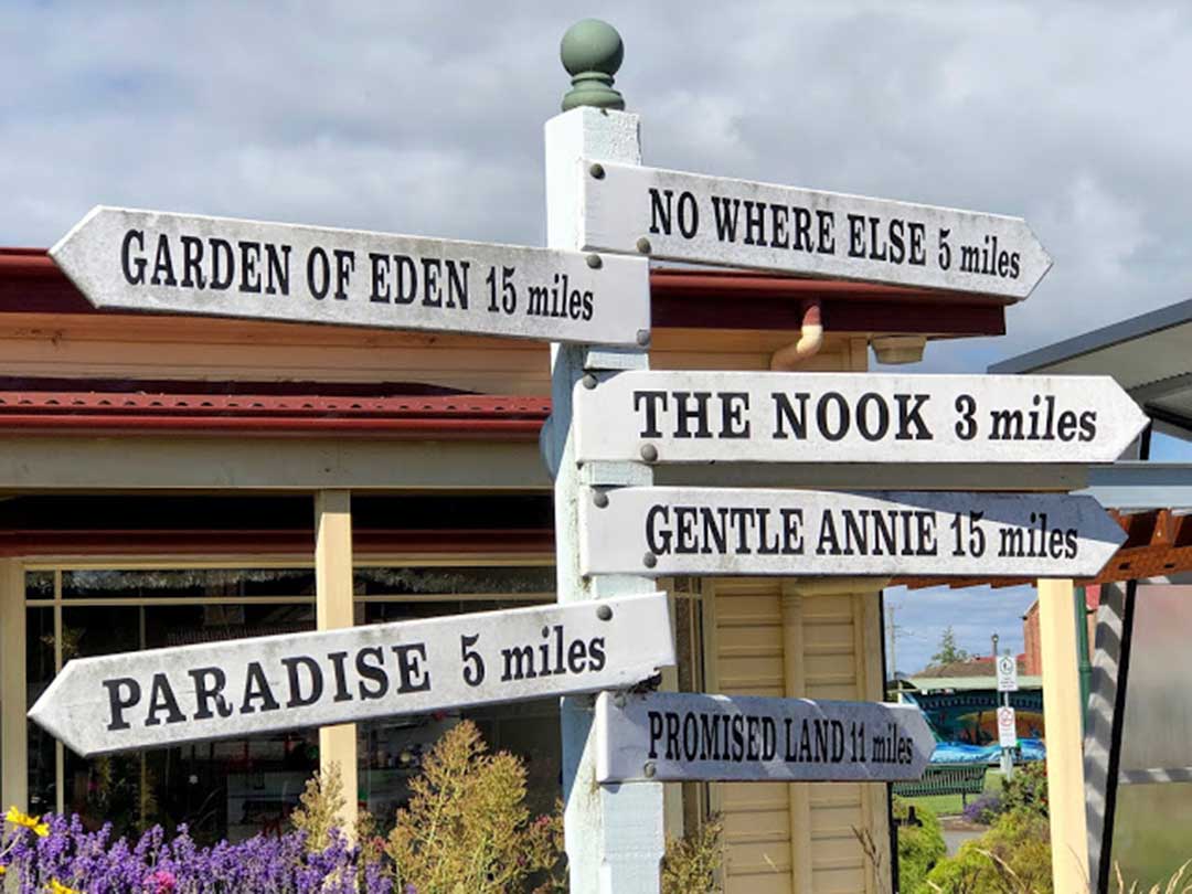 When driving from Sheffield to Wilmot, you will go through the most quaintly named place in Australia - No Where Else. What is there at No Where Else? Not much really, there are no shops, no pub, no general store or toilets, just a few farm houses and an interesting sign to have your photo taken under! Nowhere Else came into being because the original road from Barrington ended at the entrance to a farm. When drivers asked the farmer what was further on he told them 'No where Else'.