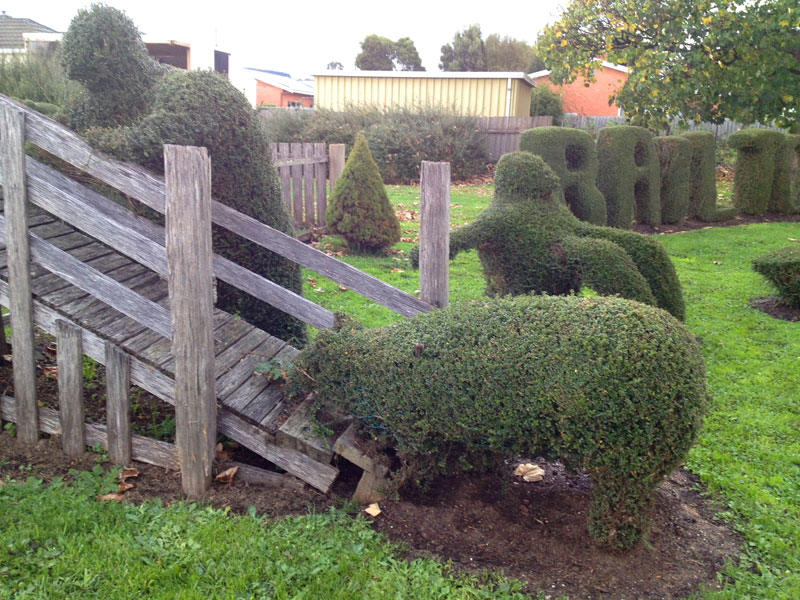 14.9 km north-east of Sheffield via Railton RoadThe main attraction in this rural inland town is topiary, which is the art of shaping bushes and trees by careful pruning to resemble familiar objects such as animals. The town is 12 km from Sheffield.