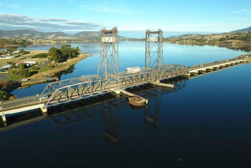 The Bridgewater Bridge and Causeway spans the Derwent River between Bridgewater and Granton to the north of Hobart. It consists of a vertical lift bridge and a specially-built causeway connecting the bridge to the east bank of the river. A bridge here was one of the first bridges constructed in Tasmania following British settlement in 1803, and gave its name to the nearby suburb of Bridgewater, Hobart. Lieutenant-Governor George Arthur commissioned the construction of the bridge and causeway as part of the Launceston-Hobart Trunk Road, linking both Tasmanian towns and providing easier access to farmlands in the interior of Tasmania.