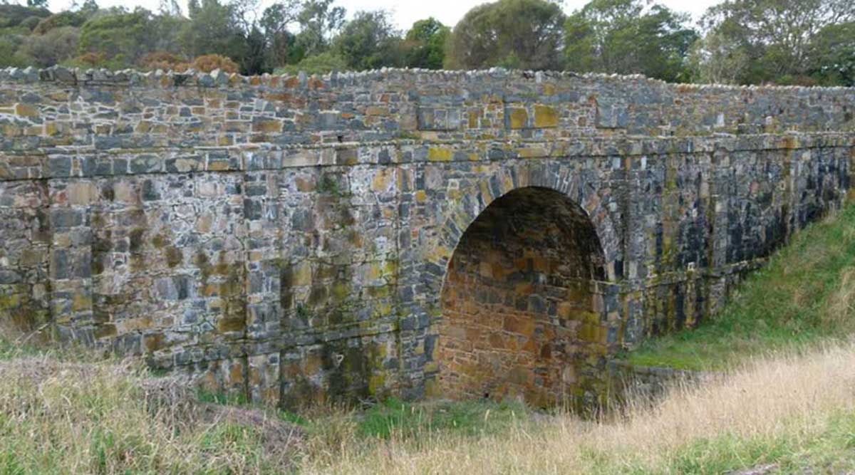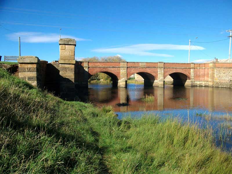 The Red Bridge icrosses the Elizabeth River at Campbell Town. It was once part of a causeway which crossed the original course of the Elizabeth River. Built in 1838 using convict labour, it is the oldest surviving brick arch bridge in Australia, as well as the oldest bridge anywhere on Australia's national highways.