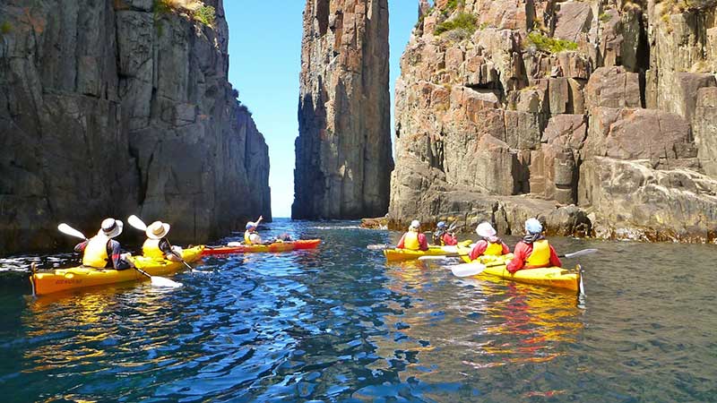 Some of the best parts of Tasmania look even more beautiful from the water – forested banks of World Heritage rivers, offshore islands that are havens for wildlife, fluted cliffs towering 300 metres above the sea. There are few better ways to explore the Tasmanian coastline than in a sea kayak. The close proximity to nature that kayaks allow gives detailed insights into the environment both above and below the water. Sea kayaking is therefore an easy and relaxing way to explore natural areas. Almost all the locations visited by Tasmania's sea kayaking clubs and sea kayak tour operators cannot be accessed by any other means. Most sea kayaks are designed to accommodate two people and all their gear. Most tour operators have a minimum age requirement of 13 years.