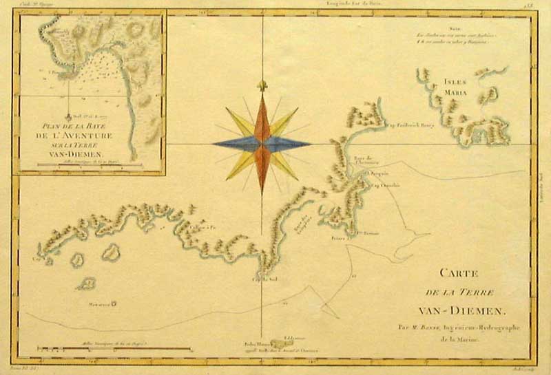 French chart of Van Diemen's Land based on Abel Tasman's discoveries. Inset: Adventure Bay