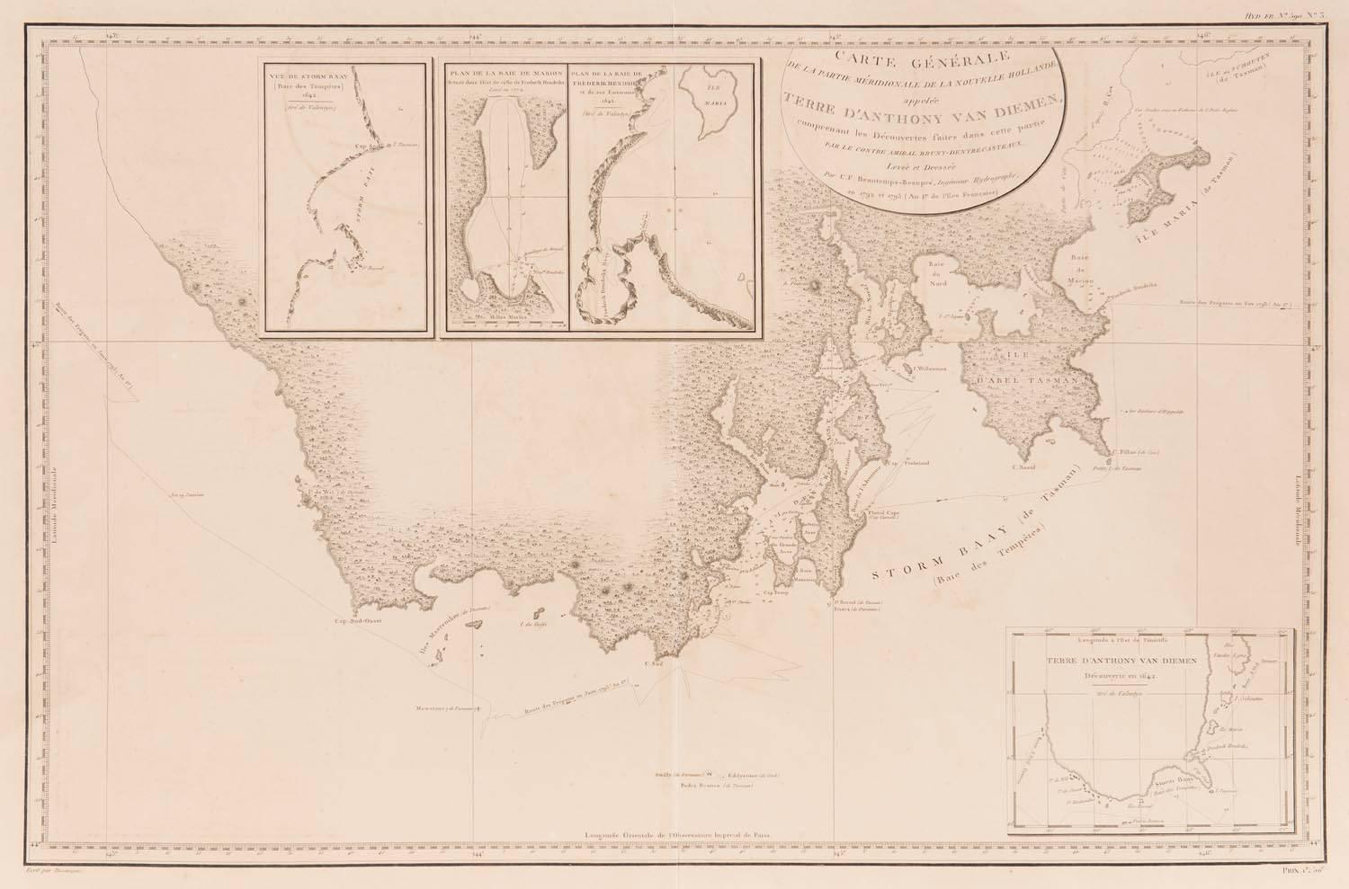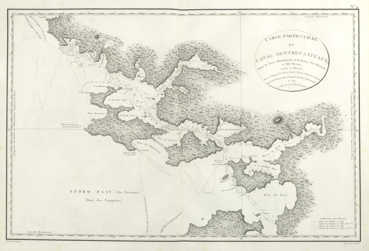 Bruni d'Entrecasteaux was fortunate in having good officers and scientists, most importantly from the exploration point-of-view the expedition's first hydrographical engineer, C.F Beautemps-Beaupre, who is now regarded as the father of modern French hydrography. The work this officer did in the field was excellent, and his charts, when published in France as an Atlas du Voyage de Bruny-Dentrecasteaux (1807) were very detailed. The atlas contains 39 charts, of which those of Van Diemen's Land were the most detailed; they remained the source of the English charts of the area for many years.