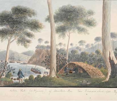 Native Hut, or Wigwam, of Adventure Bay. George Tobin, watercolour on paper, c. 1792.