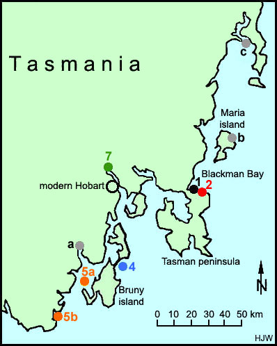 With the ships Duke of Clarence and Duchess of Bengal, Lieut. John Hayes visited Tasmania, re-naming the discoveries of D'Entrecasteaux. Some of these we again re-named by Baudin in 1802.