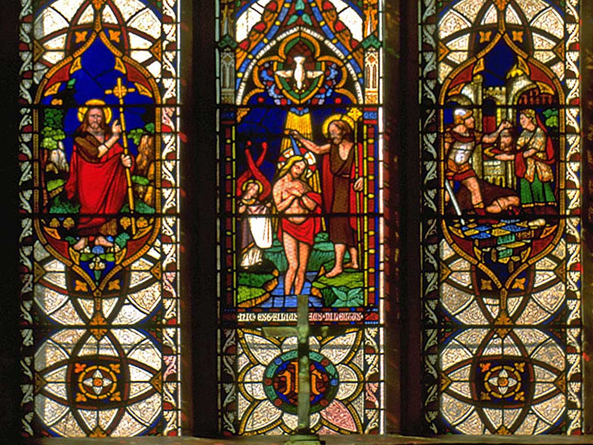 The church's graveyard is also of particular interest. A recent wood sculpture in the church grounds picks up the theme of Jesus' baptism from the church's historic stained glass window.