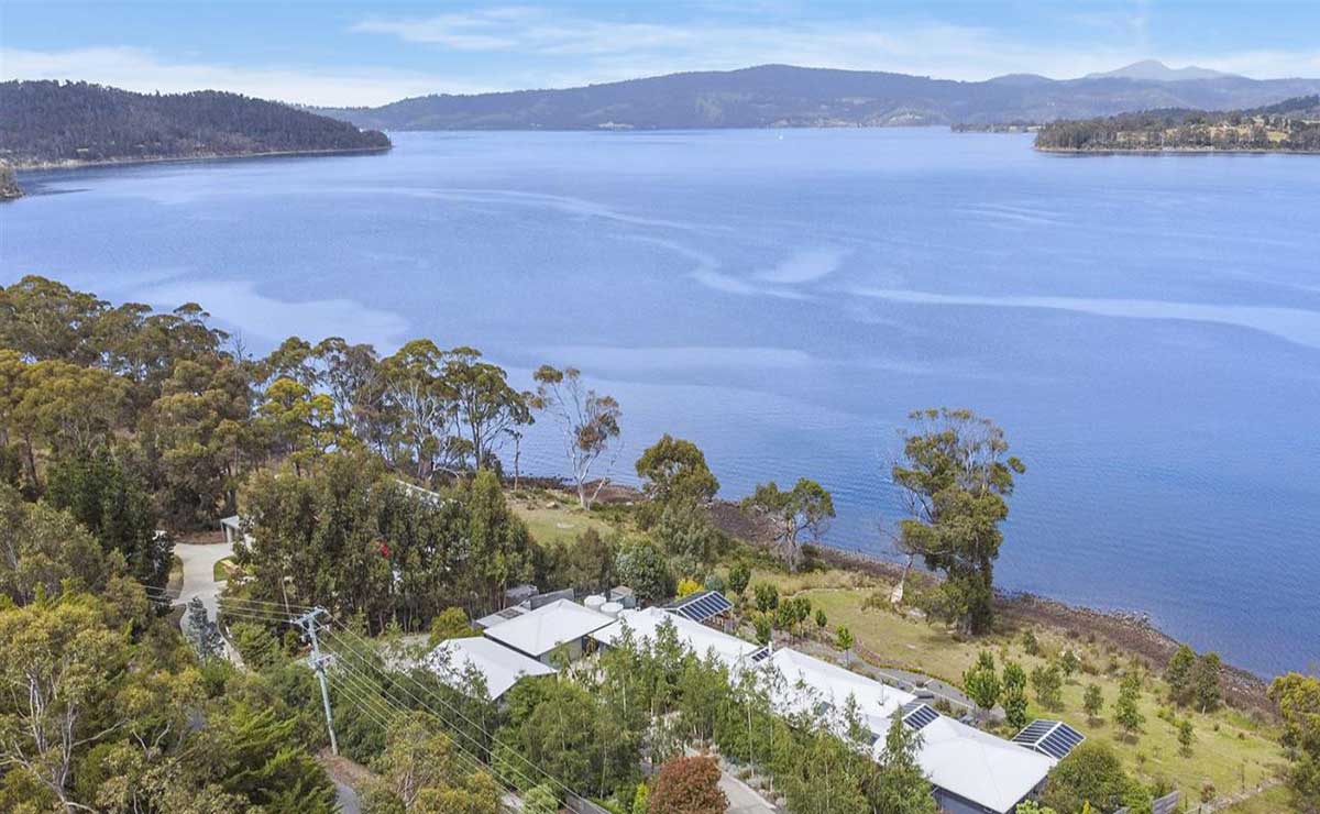 On the way there are numerous minor settlements with urban sized allotments located on the coastal strip on the eastern shores of the Huon River estuary at locations like Randalls Bay, Eggs and Bacon Bay, Garden Island Sands, Charlotte Cove and Abels Bay. These settlements are located at intervals along the coastline south of Cygnet and typically comprise between 50 and 100 lots of an urban residential size.