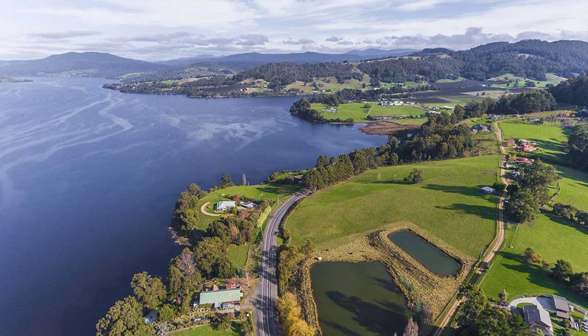 Geeveston lies to the south of Franklin on the western bank of the Huon River. Huon Highway provides road access to Geeveston and the Lower Huon region to the south. On its way it passes through the small settlement of Castle Forbes Bay, built around the bay after which it is named.